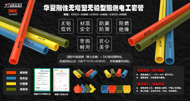 北京世纪华翌管道有限公司组建于二零零五年,是专业生产研发家用布线产品的企业,注册商标“华翌”牌。产品涵盖PVC电工管道、金属电工管道、复合防腐电工管道等三大领域。绿色、环保一直是我公司的经营理念,是国内使用有机类助剂生产无铅型电工套管的厂家,销售服务取得了ISO9001:2015质量管理体系认证和相关产品的3CCC国家强制认证。凭借多年积累的技术和经验,我公司拥有独立研发产品的能力,可直接为大型家居连锁企业打造符合企业定位的个性化产品,实现设计、生产、配送等一条龙服务。企业宗旨:以质量为基本,以诚信为根本,以服务为保障,以新产品开发,技术进步,科学管理和客户所需为动力,以生产绿色、环保、健康产品为己任,为进一步开发超出客户期望值的高科技产品而努力。