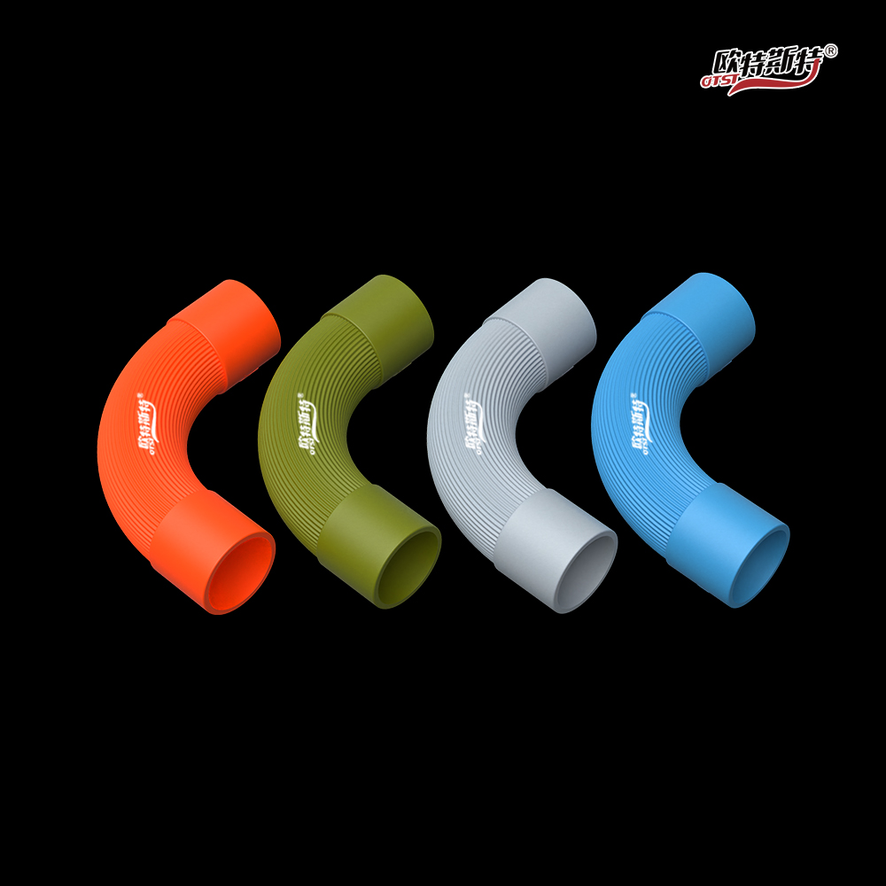 90度配套成品弯头,规格为18mm、20mm,用于线路过弯处,施工时可灵活搭配使用。