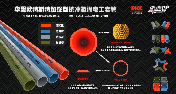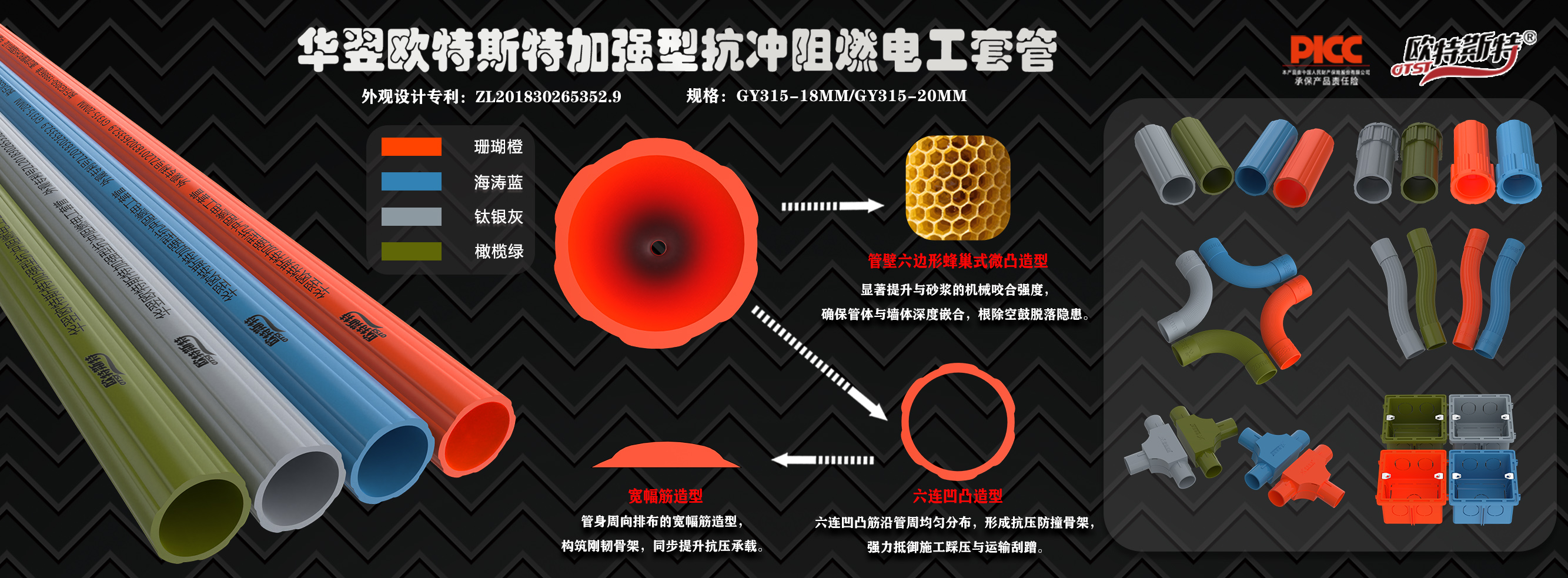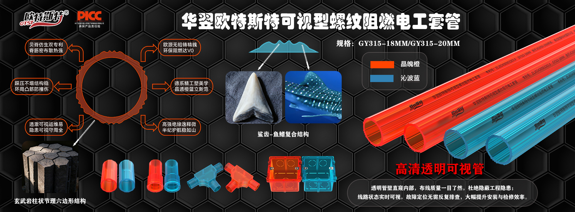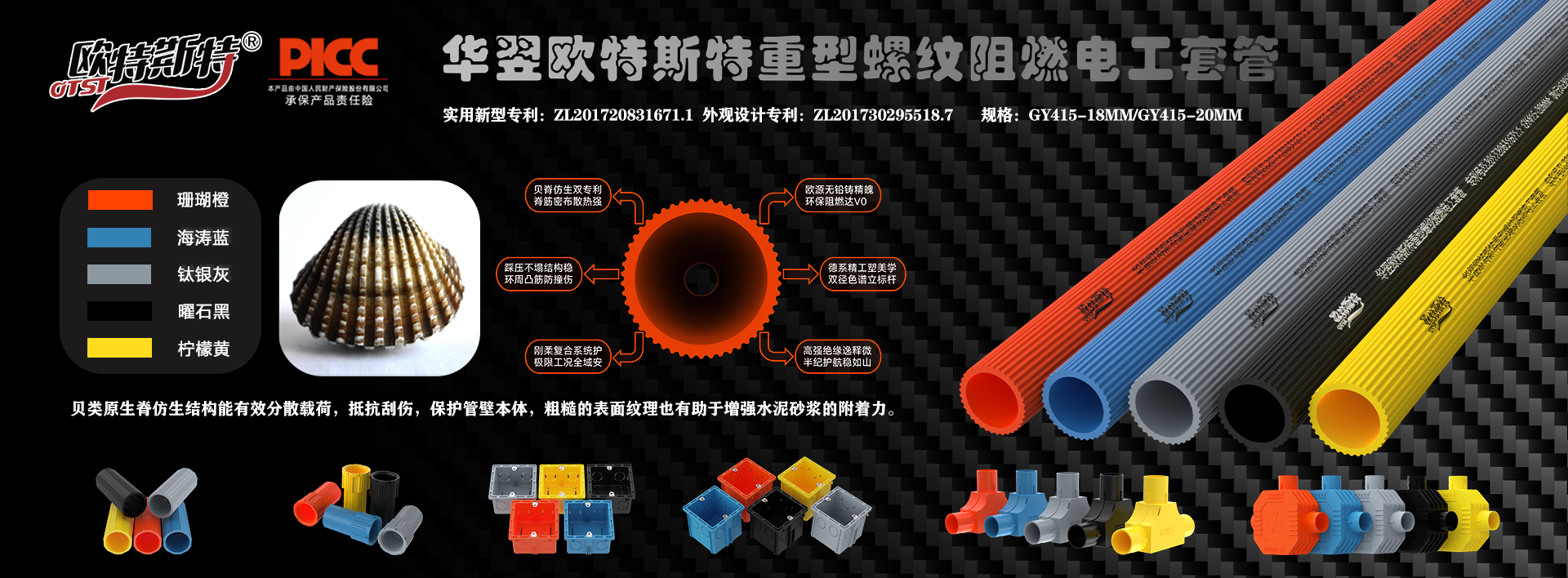华翌欧特斯特重型螺纹阻燃电工套管,是我公司推出并拥有双专利(实用新型:ZL201720831671.1;外观设计:ZL201730295518.7)的核心产品。该产品突破性地采用管壁周身精密分布的深海贝类原生脊外形设计,赋予管壁卓越的抗压性能,其抗压强度达到GY415级别,可稳定承受高达1250N的压力,为电气线路提供坚实可靠的防护保障。本品的核心优势在于其独特的贝类原生脊仿生结构。这些环绕管壁周身的贝类脊状凸筋造型,灵感源自深海贝类抵御高压环境的坚固壳体形态。其独特的轮廓显著增强了管材的抗压承载能力。当线管承受压力时,贝类脊状凸筋如同坚固的骨骼支架,能高效分散并承载垂直方向的巨大负荷,有效抵...