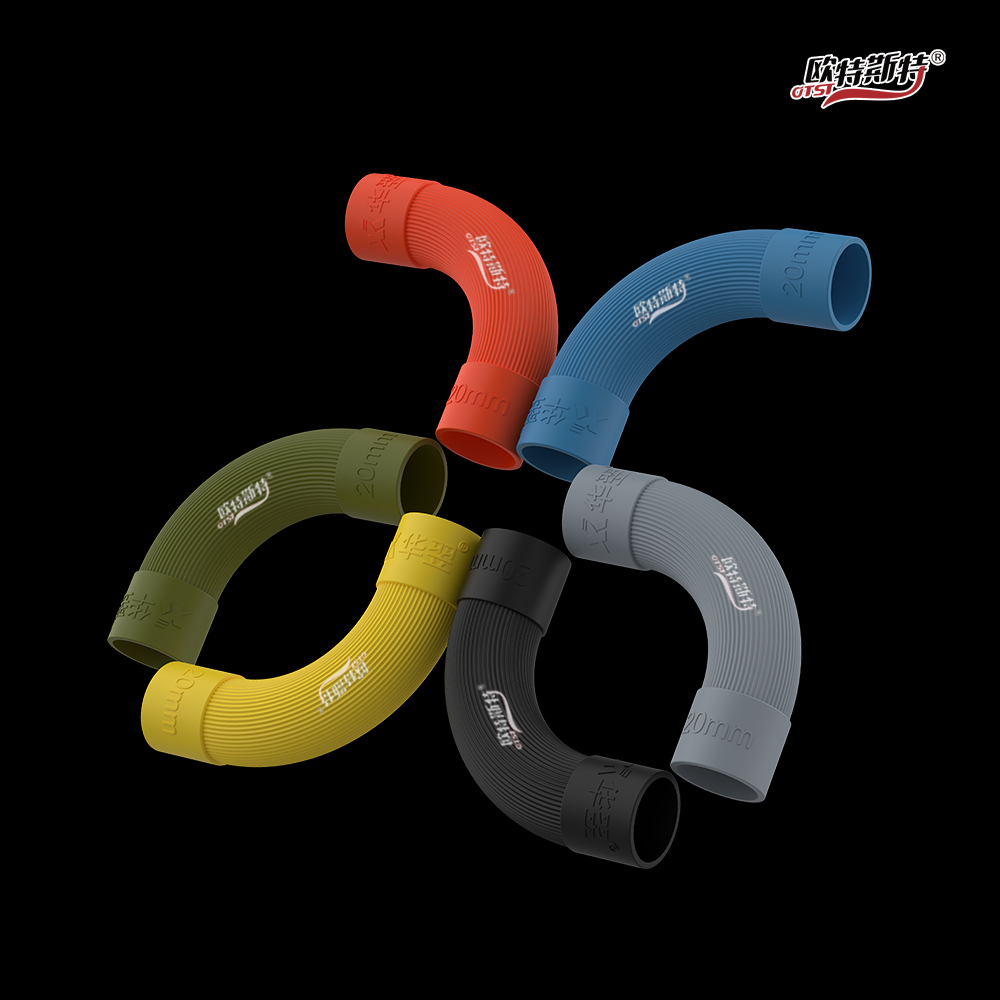 90度配套成品弯头,规格为18mm、20mm,用于线路过弯处,施工时可灵活搭配使用。